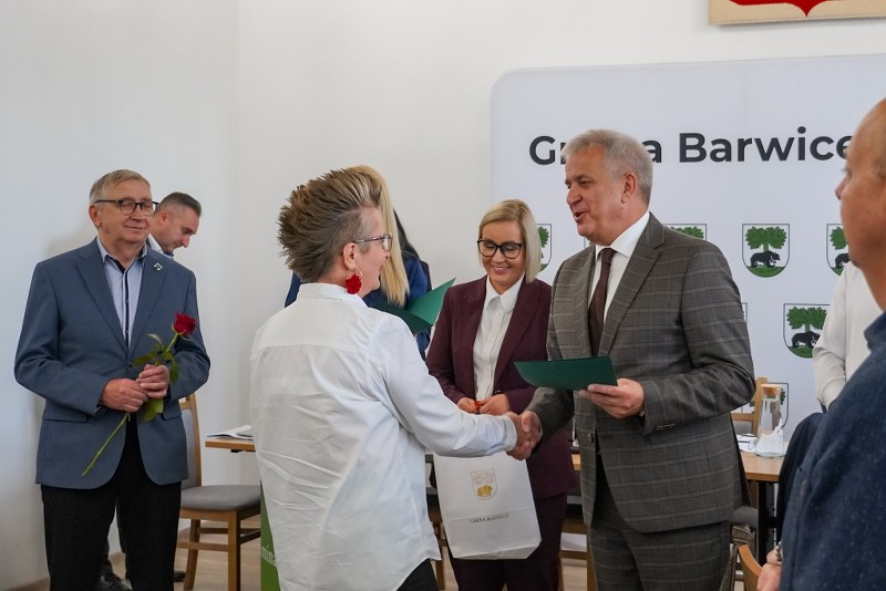30 września 2025 r., podczas XXIV sesji Rady Miejskiej w Barwicach, Burmistrz Barwic Robert Zborowski, Zastępca Burmistrza Kamila Gwiazda, Wiceprzewodniczący Rady Miejskiej Edward Trejnis oraz radni Rady Miejskiej złożyli podziękowania i gratulacje sołtysom.