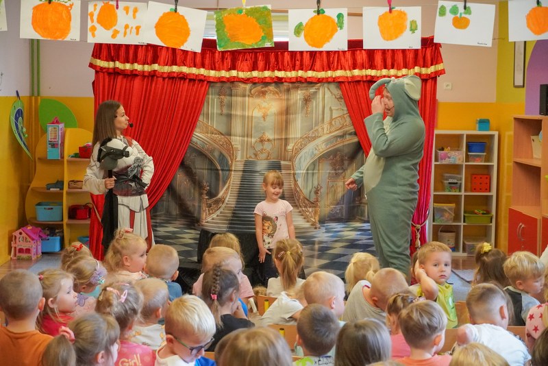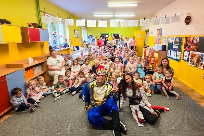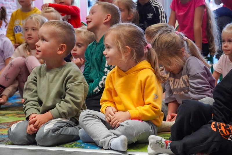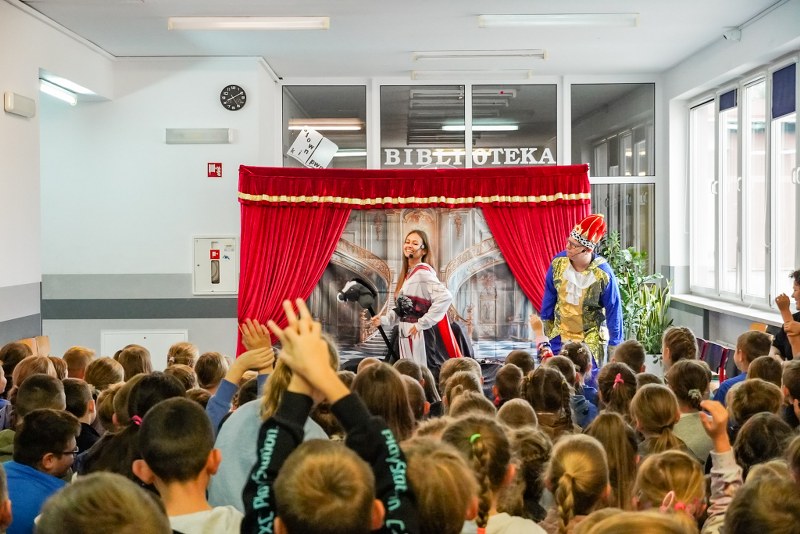 Dzieci z przedszkoli „Happy Land” i „Bajkowa Kraina” obejrzały przedstawienie pt. „Tajemnica zaginionych książek”. Spektakl w barwny i pełen humoru sposób przypominał najmłodszym o wartości kulturalnych słów, zasadach bezpiecznego korzystania z telefonu oraz znaczeniu odpowiedzialnych zachowań na co dzień.