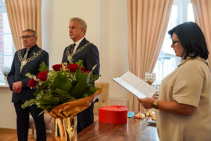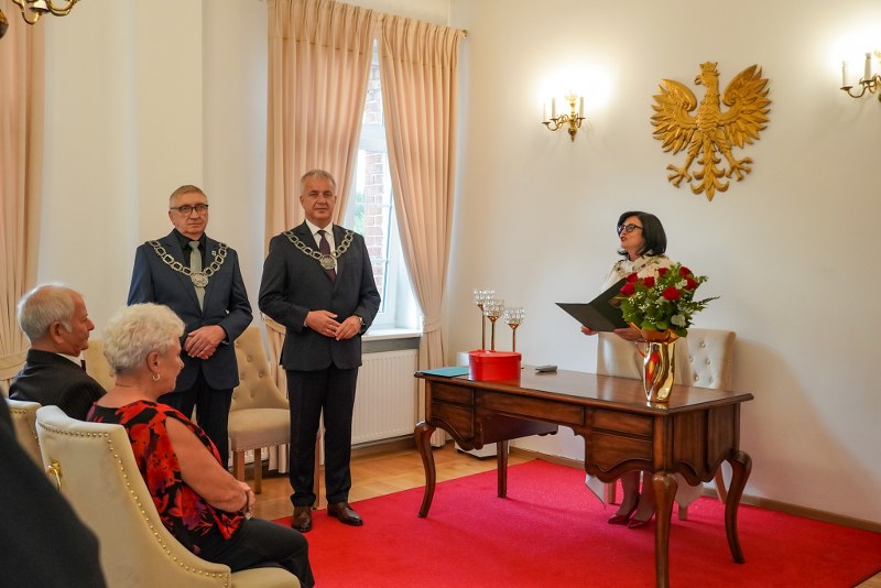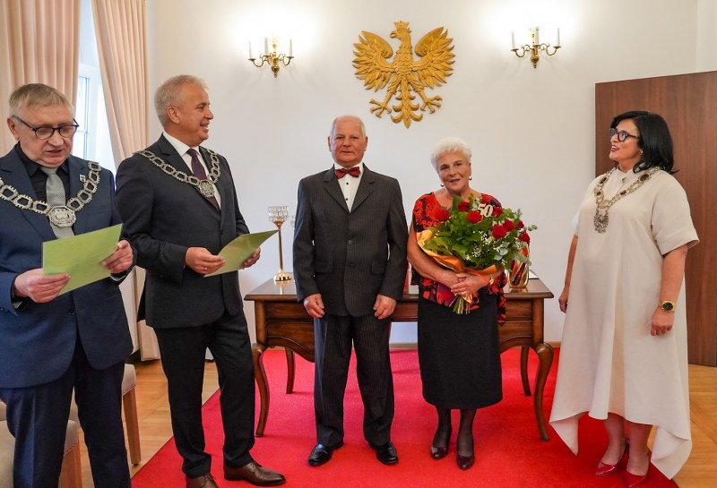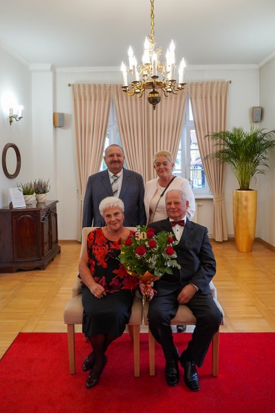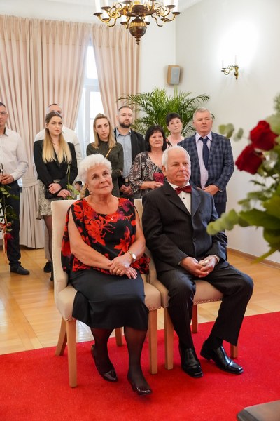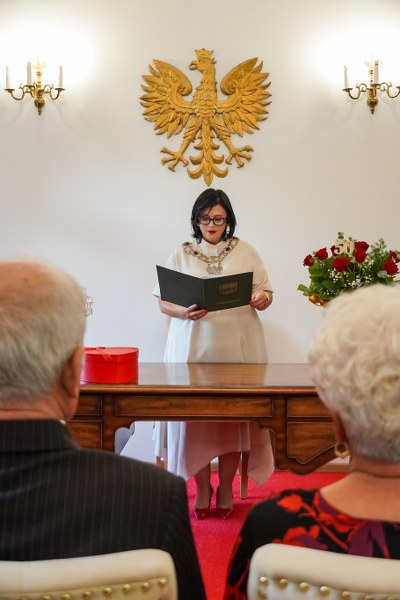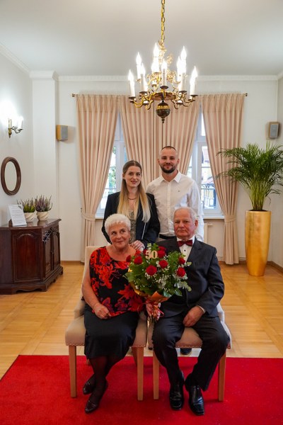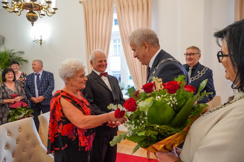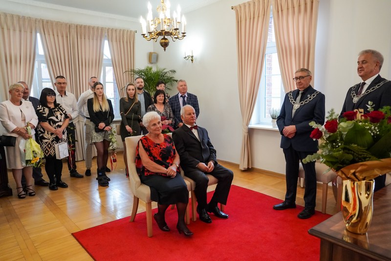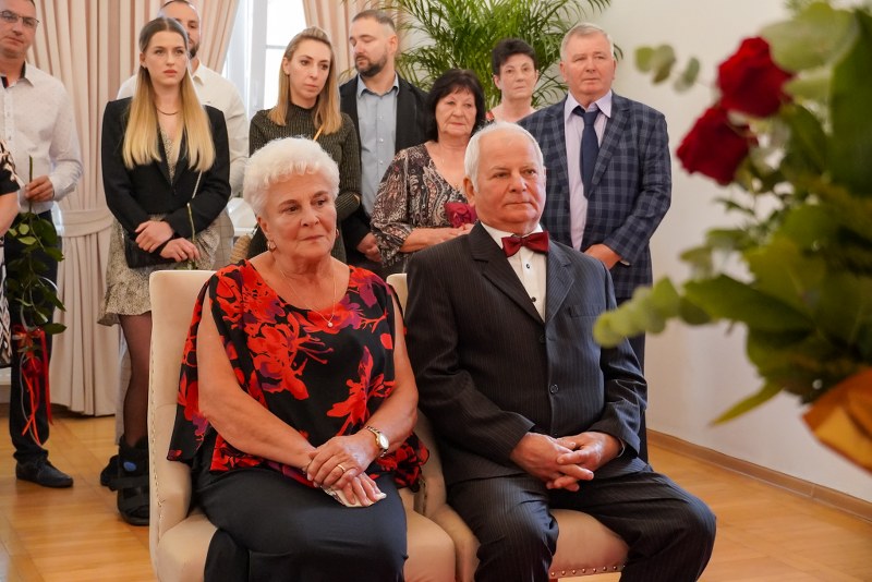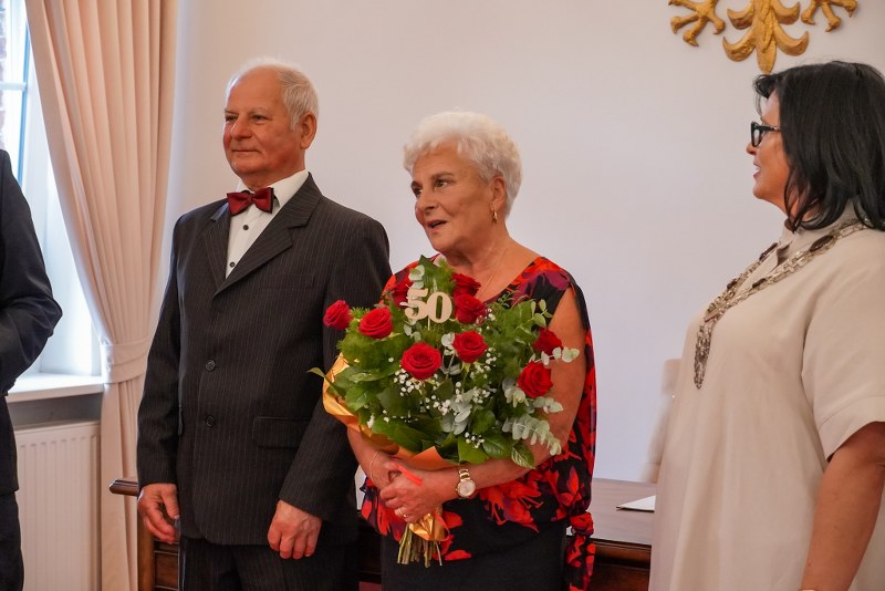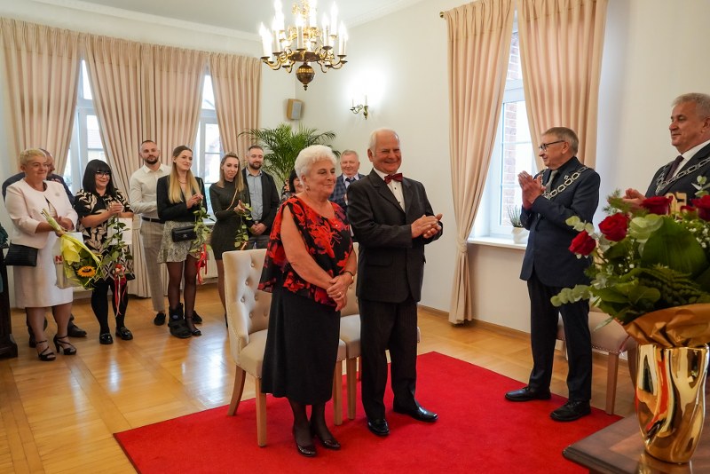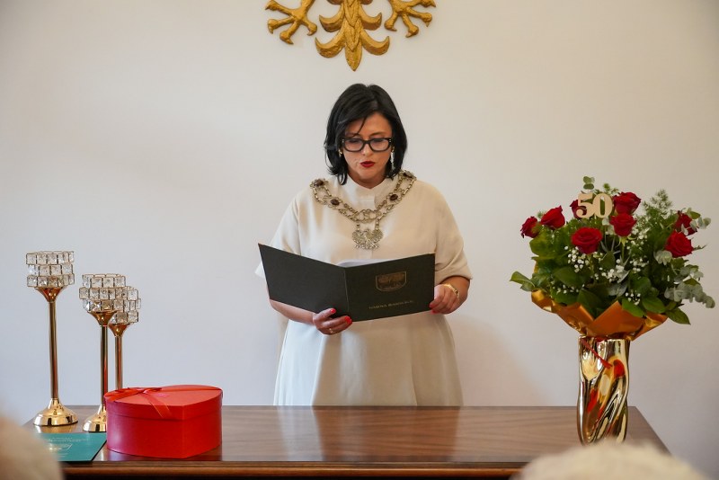 Uroczystość rozpoczęła się od dźwięków Marsza Mendelssohna, który na chwilę przeniósł Jubilatów do dnia ich ślubu – 27 września 1975 roku. W swoim przemówieniu Burmistrz Robert Zborowski podkreślił, że wspólne życie to przede wszystkim wzajemne wsparcie, gotowość do kompromisu i siła charakterów, które pozwoliły Jubilatom przejść razem przez pięć dekad pełnych miłości, szacunku i oddania.