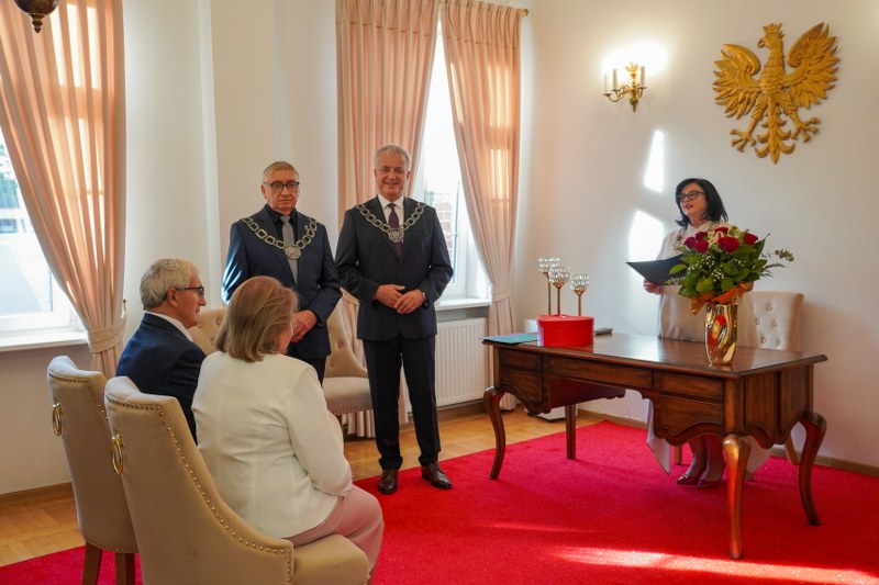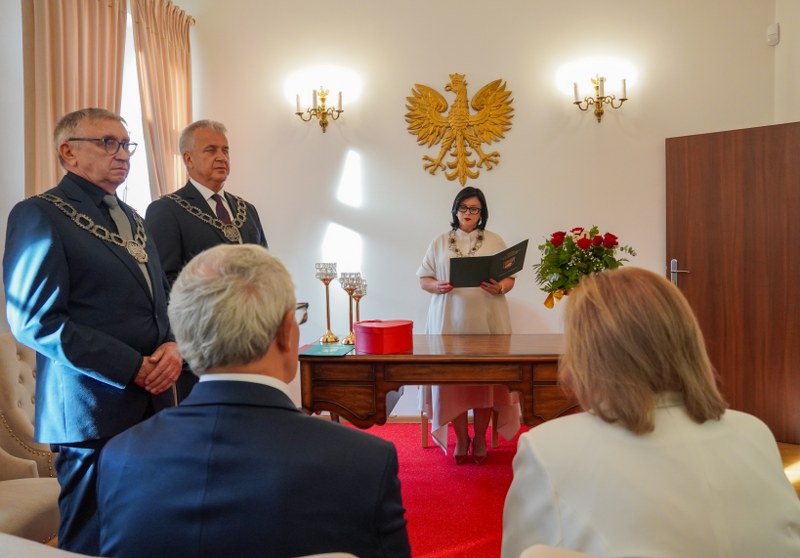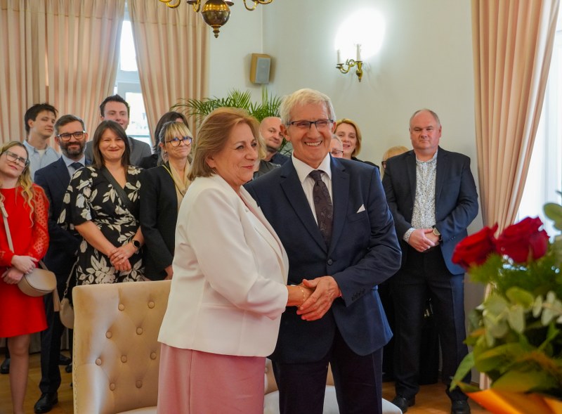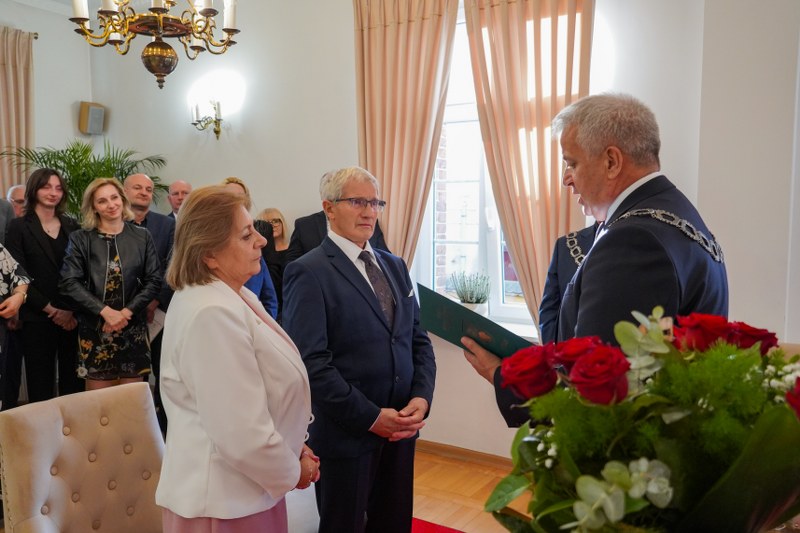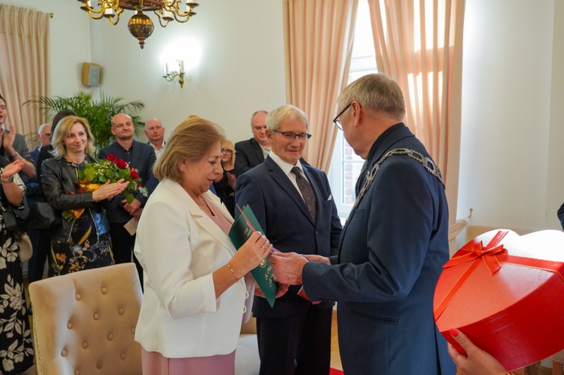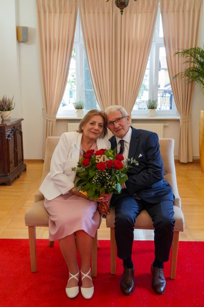 Uroczystość rozpoczęła się tradycyjnie od Marsza Mendelssohna, który przypomniał Jubilatom dzień ich ślubu sprzed pół wieku – 6 września 1975 roku. Szczególne, wzruszające słowa do Jubilatów skierowała Renata Trembowelska – Kierownik Urzędu Stanu Cywilnego w Barwicach, prowadząca ceremonię. Podkreśliła, że wspólne życie to nie tylko chwile pełne radości, lecz przede wszystkim codzienny trud, wzajemne wsparcie i szacunek.