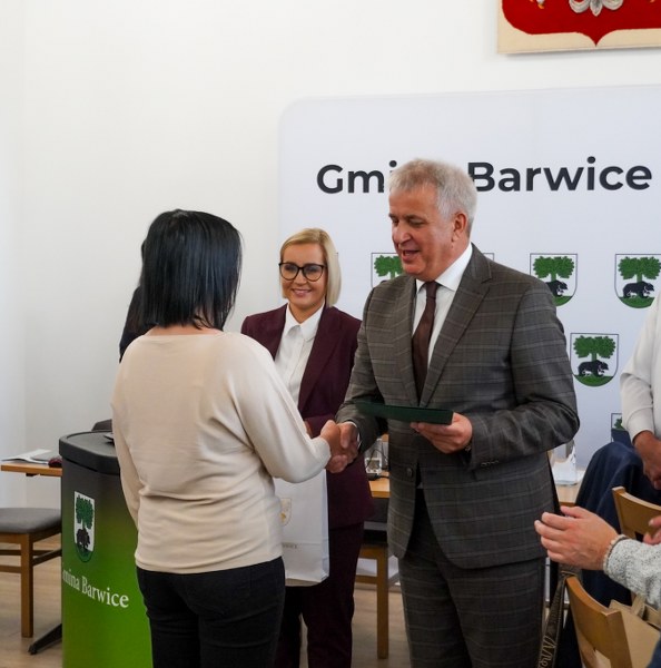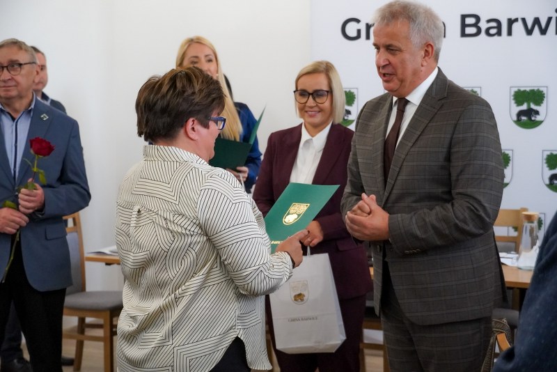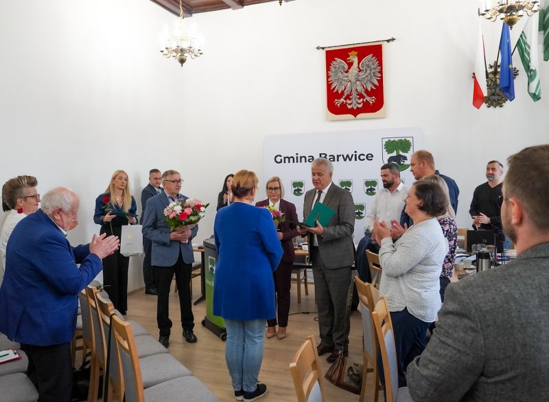 30 września 2025 r., podczas XXIV sesji Rady Miejskiej w Barwicach, Burmistrz Barwic Robert Zborowski, Zastępca Burmistrza Kamila Gwiazda, Wiceprzewodniczący Rady Miejskiej Edward Trejnis oraz radni Rady Miejskiej złożyli podziękowania i gratulacje sołtysom.