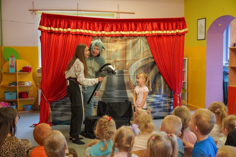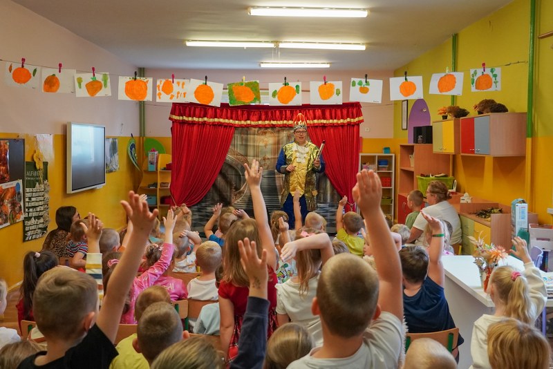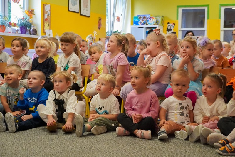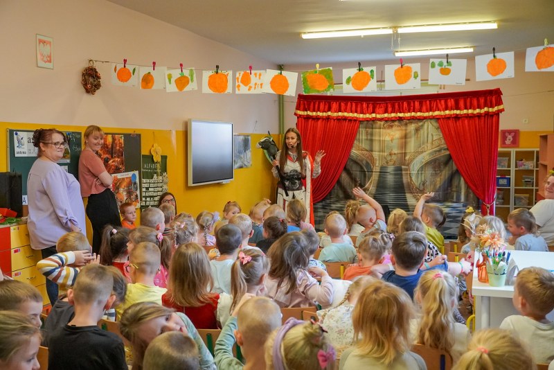Dzieci z przedszkoli „Happy Land” i „Bajkowa Kraina” obejrzały przedstawienie pt. „Tajemnica zaginionych książek”. Spektakl w barwny i pełen humoru sposób przypominał najmłodszym o wartości kulturalnych słów, zasadach bezpiecznego korzystania z telefonu oraz znaczeniu odpowiedzialnych zachowań na co dzień.