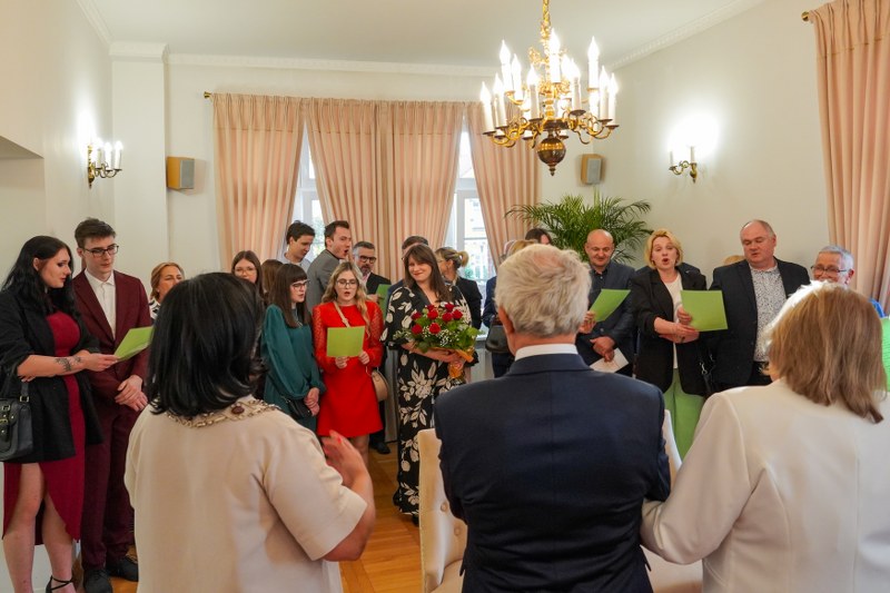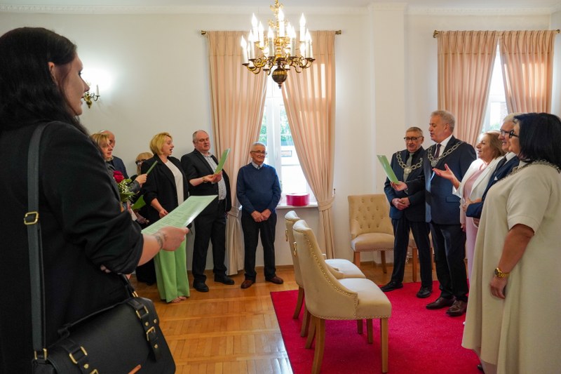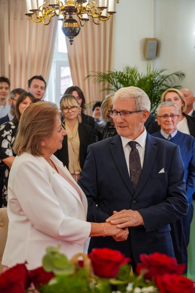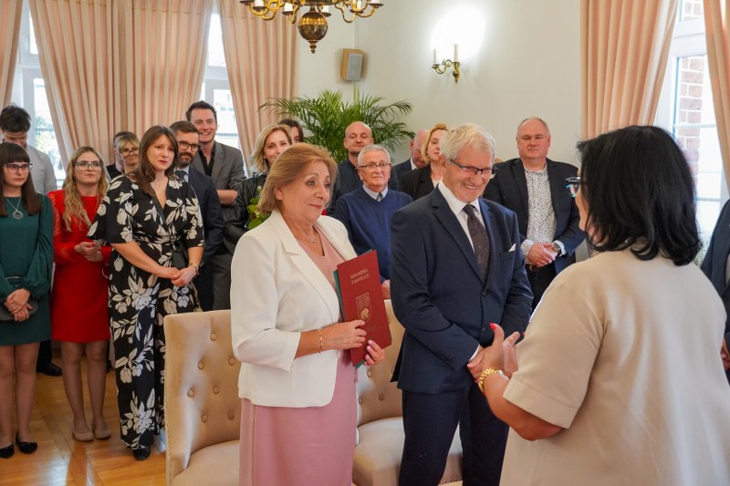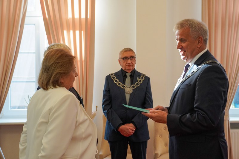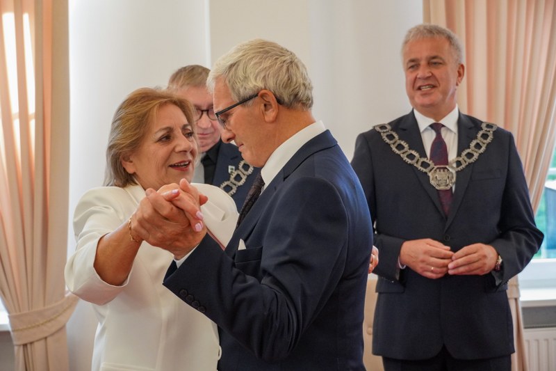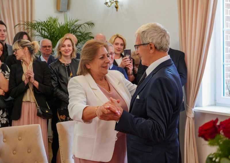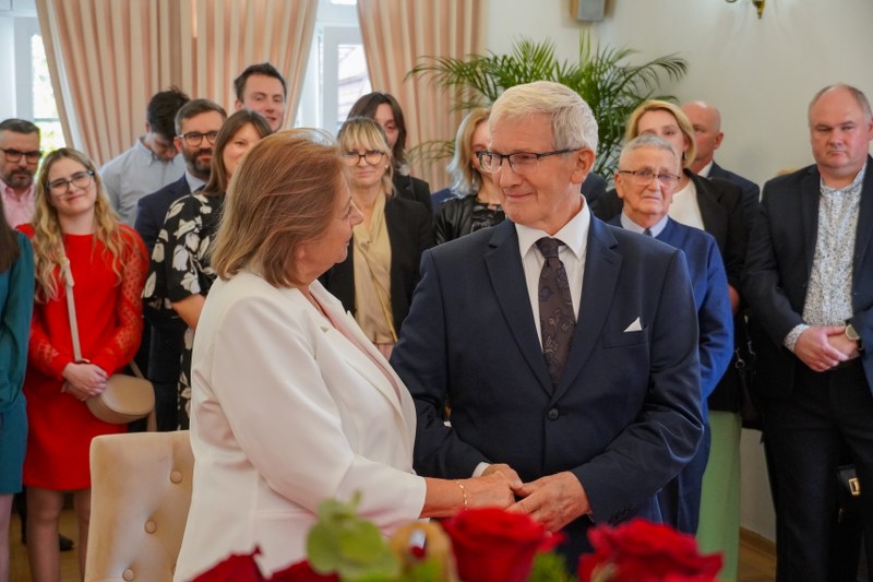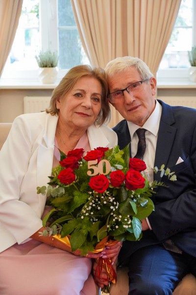 Uroczystość rozpoczęła się tradycyjnie od Marsza Mendelssohna, który przypomniał Jubilatom dzień ich ślubu sprzed pół wieku – 6 września 1975 roku. Szczególne, wzruszające słowa do Jubilatów skierowała Renata Trembowelska – Kierownik Urzędu Stanu Cywilnego w Barwicach, prowadząca ceremonię. Podkreśliła, że wspólne życie to nie tylko chwile pełne radości, lecz przede wszystkim codzienny trud, wzajemne wsparcie i szacunek.